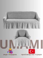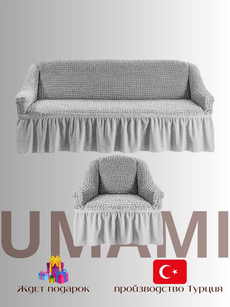 Чехол на 3-х местный диван и 1 кресло с оборкой ,светло-серый