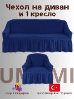 Чехол на 3-х местный диван и 1 кресло с оборкой ,синий