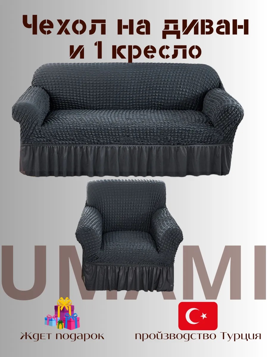 Чехол на 3-х местный диван и 1 кресло с оборкой , темно-серый