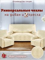 Комплект чехлов на диван и 2 кресла без оборки Бархатный Жаккард , кремовый