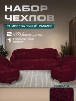 Комплект чехлов на диван и 2 кресла без оборки Жаккард , бордовый