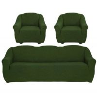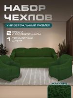 Комплект чехлов на диван и 2 кресла без оборки Жаккард , зеленый
