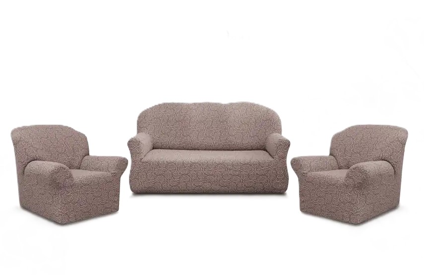 Комплект чехлов на диван и 2 кресла без оборки Жаккард ,Капучино