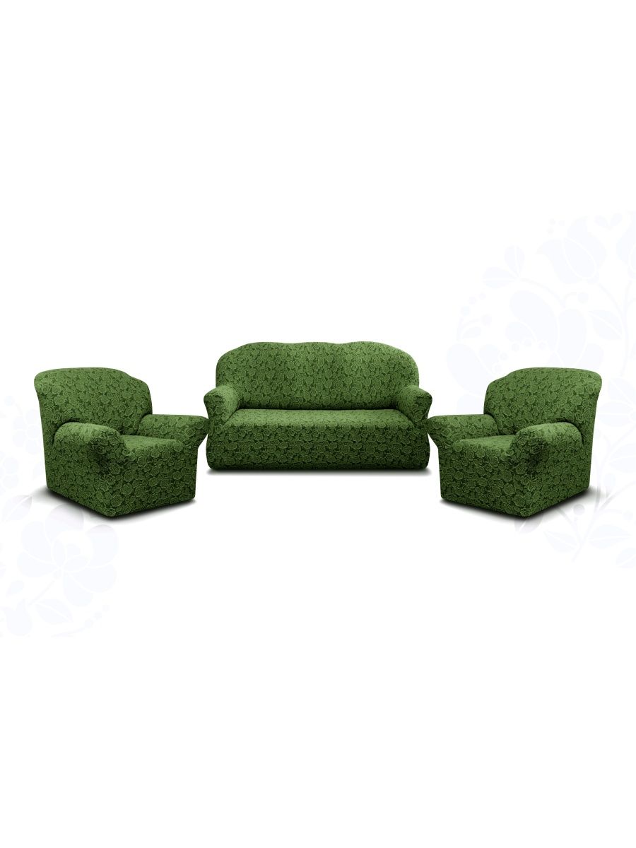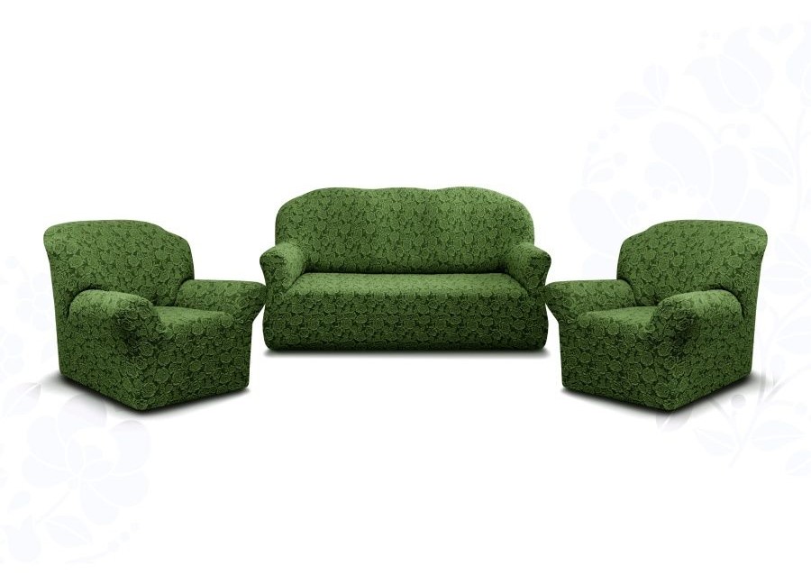 Комплект чехлов на диван и 2 кресла без оборки Жаккард ,Зелёный