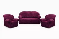 Комплект чехлов на диван и 2 кресла без оборки Жаккард ,бордовый