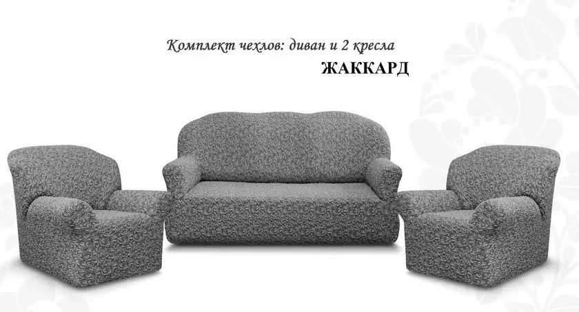 Комплект чехлов на диван и 2 кресла без оборки Жаккард ,Серый