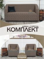Комплект чехлов на диван и 2 кресла без оборки Жаккард ,капучино
