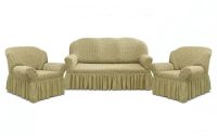 Комплект чехлов на 3-х местный диван и 2 кресла с оборкой Жаккард ,бежевый