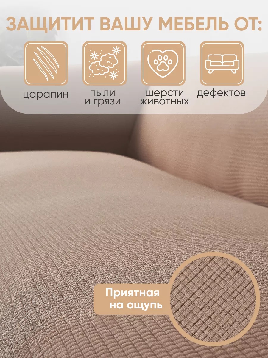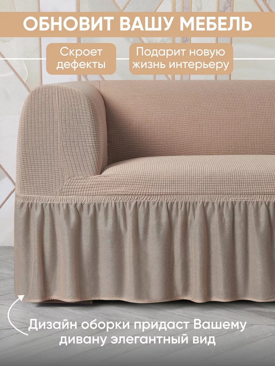 Комплект чехлов на 3-х местный диван и 2 кресла с оборкой Велюр ,какао