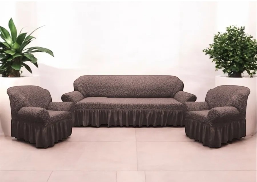 Комплект чехлов на 3-х местный диван и 2 кресла с оборкой Жаккард ,капучино
