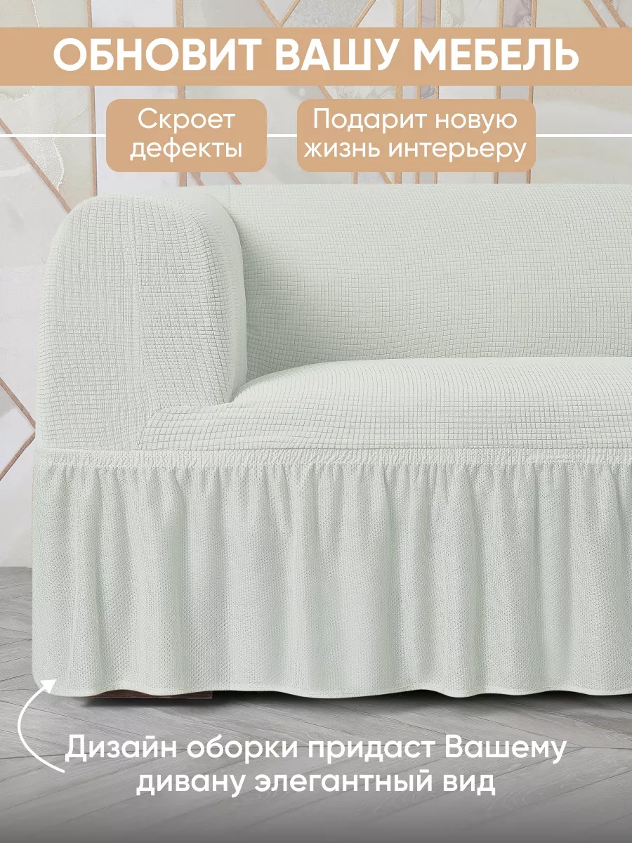 Комплект чехлов на 3-х местный диван и 2 кресла с оборкой Велюр ,мятный