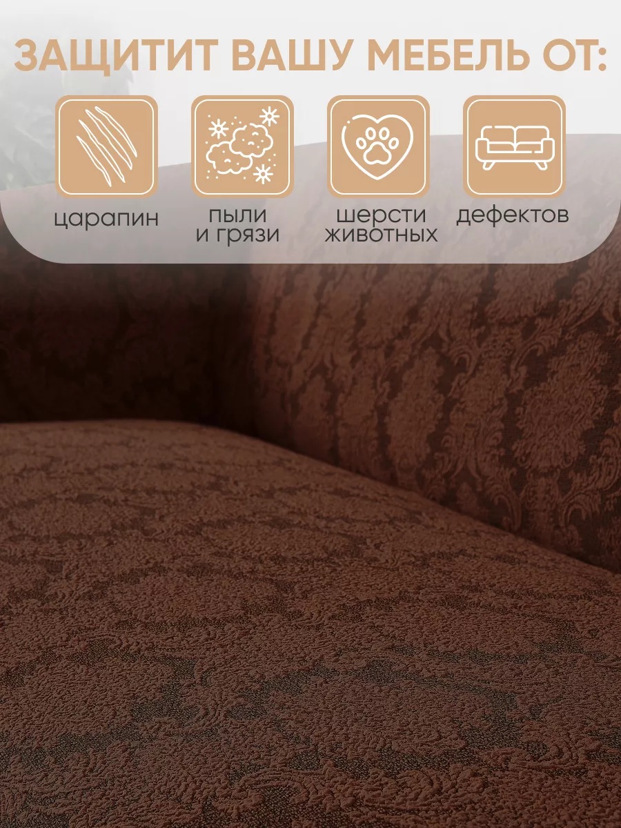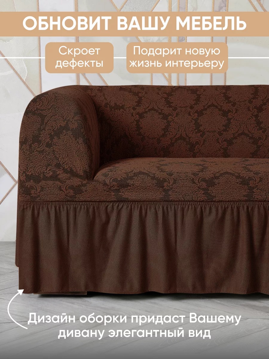Комплект чехлов на 3-х местный диван и 2 кресла с оборкой Жаккард ,шоколадный