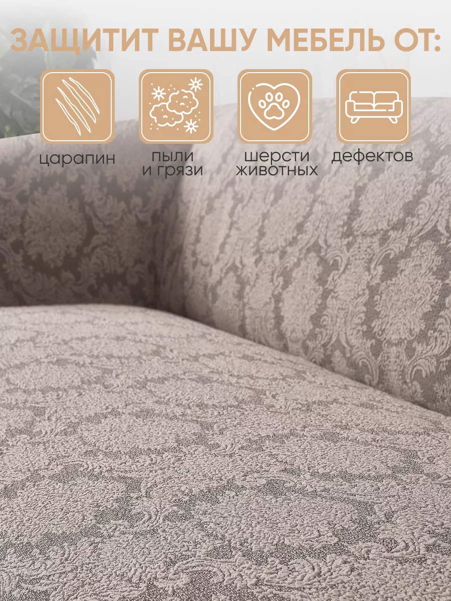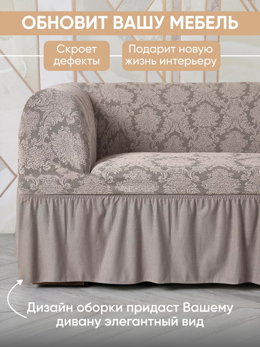 Комплект чехлов на 3-х местный диван и 2 кресла с оборкой Жаккард ,какао