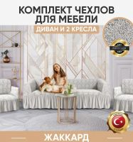 Комплект чехлов на 3-х местный диван и 2 кресла с оборкой Жаккард ,слоновая кость