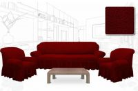 Комплект чехлов на 3-х местный диван и 2 кресла с оборкой Капля ,бордовый