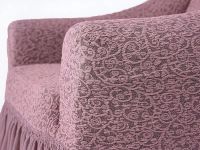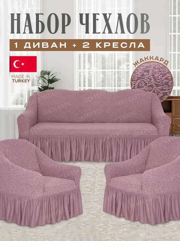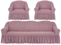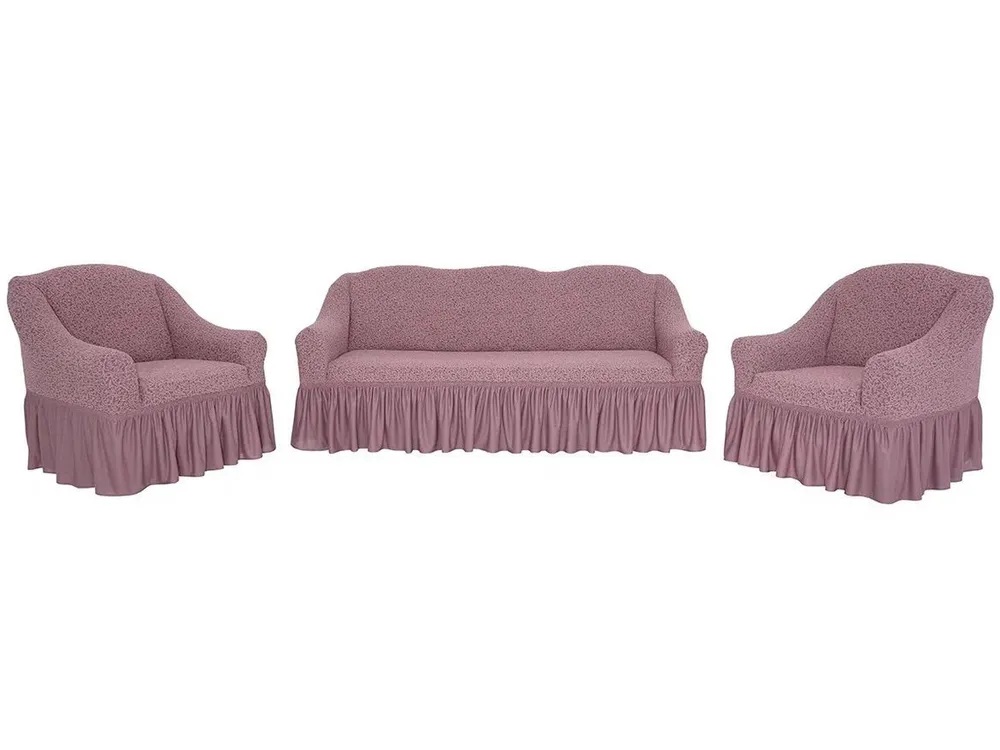 Комплект чехлов на 3-х местный диван и 2 кресла с оборкой Жаккард , пудровый