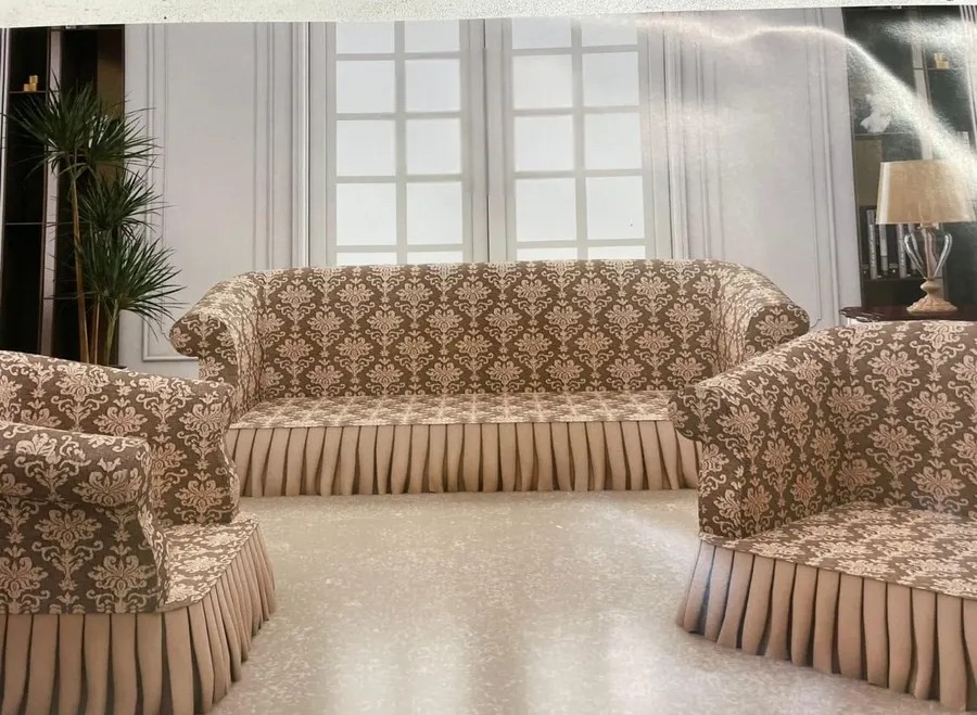 Комплект чехлов на 3-х местный диван и 2 кресла с оборкой Жаккард ,крем-брюле