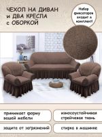 Комплект чехлов на 3-х местный диван и 2 кресла с оборкой Жаккард ,коричневый