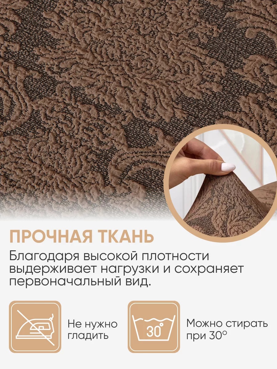 Преобразите вашу гостиную с помощью изысканного комплекта чехлов, выполненных из благородного жаккарда в оттенке молочного шоколада. Этот элегантный набор, предназначенный для 3-х местного дивана и двух кресел, привнесет в ваш интерьер нотку роскоши и уюта.