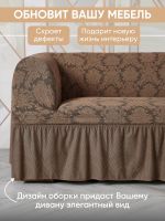 Комплект чехлов на 3-х местный диван и 2 кресла с оборкой Жаккард, молочный шоколад