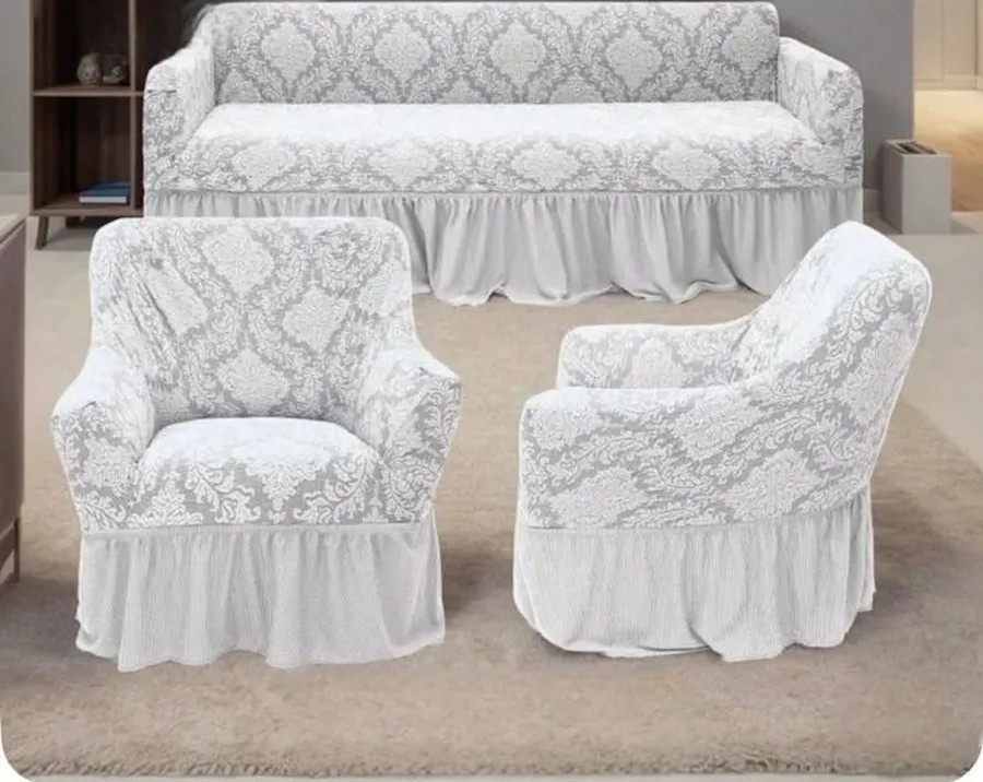 Комплект чехлов на 3-х местный диван и 2 кресла с оборкой Жаккард ,белый