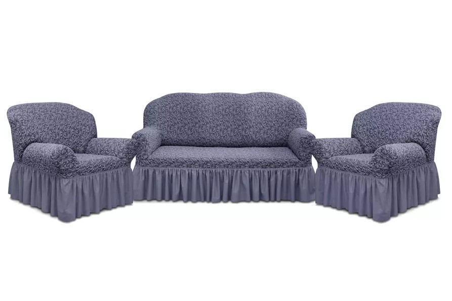 Комплект чехлов на 3-х местный диван и 2 кресла с оборкой Жаккард ,серый