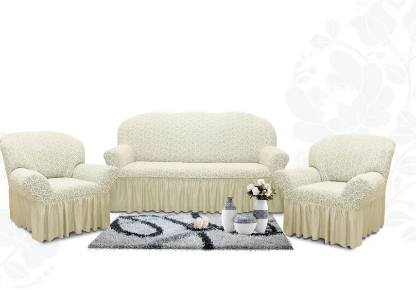 Комплект чехлов на 3-х местный диван и 2 кресла с оборкой Жаккард ,ванильный