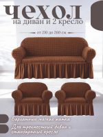 Комплект чехлов на 3-х местный диван и 2 кресла с оборкой ,шоколадно-коричневый