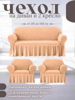 Комплект чехлов на 3-х местный диван и 2 кресла с оборкой ,медовый