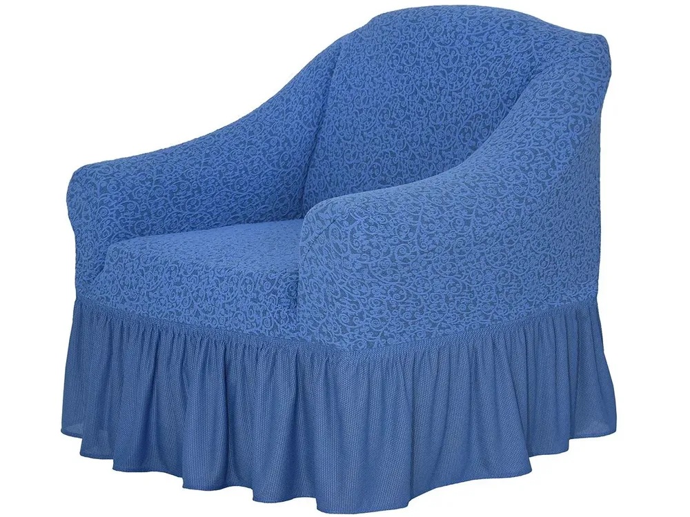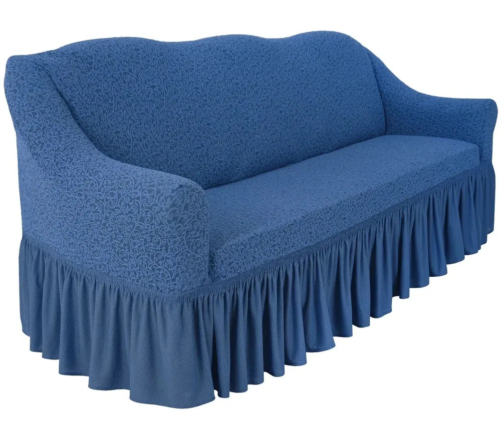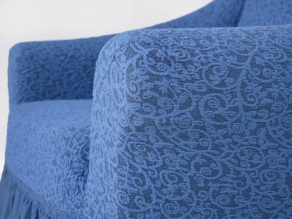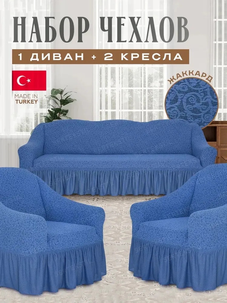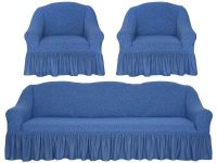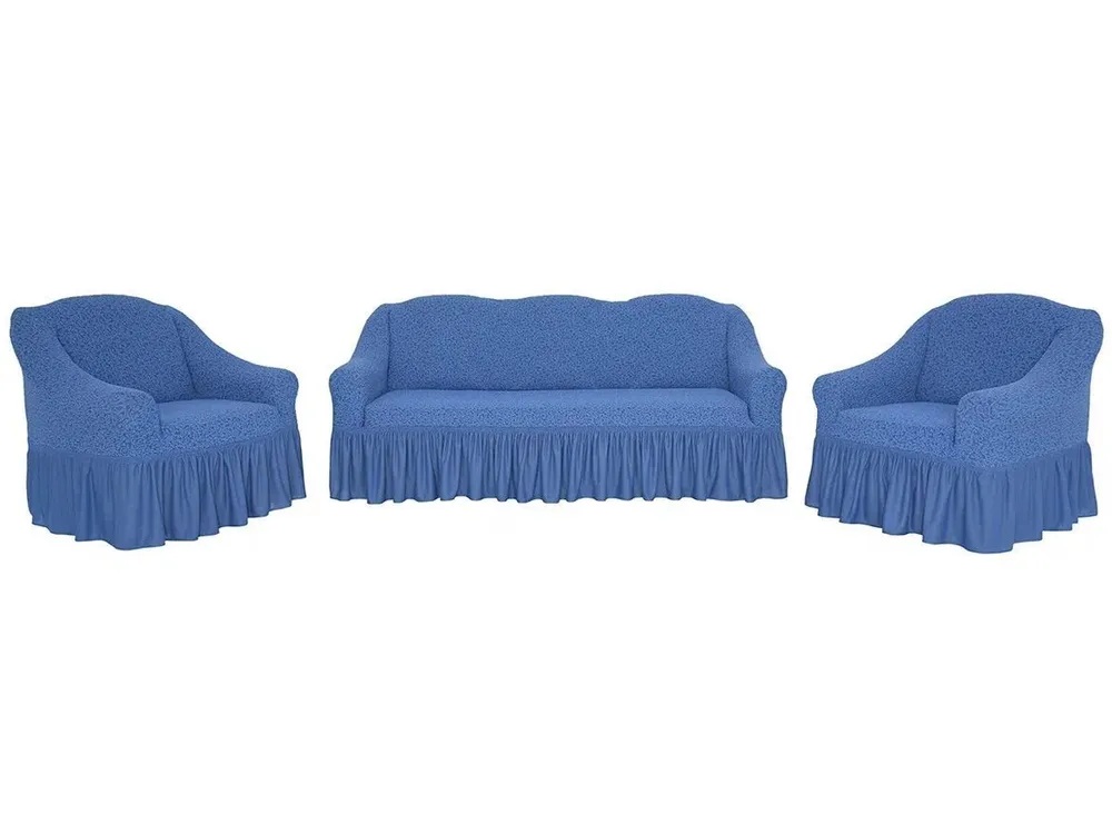 Комплект чехлов на 3-х местный диван и 2 кресла с оборкой Жаккард ,голубой