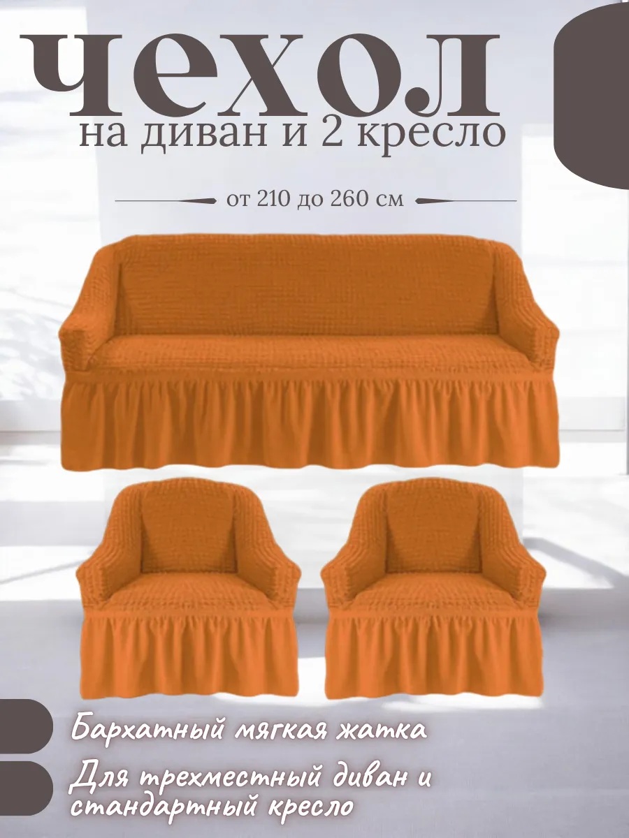 Комплект чехлов на 3-х местный диван и 2 кресла с оборкой ,оранжевый