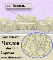 Комплект чехлов на 3-х местный диван и 2 кресла с оборкой Жаккард ,Ваниль