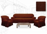 Комплект чехлов на 3-х местный диван и 2 кресла с оборкой Капля ,Шоколад