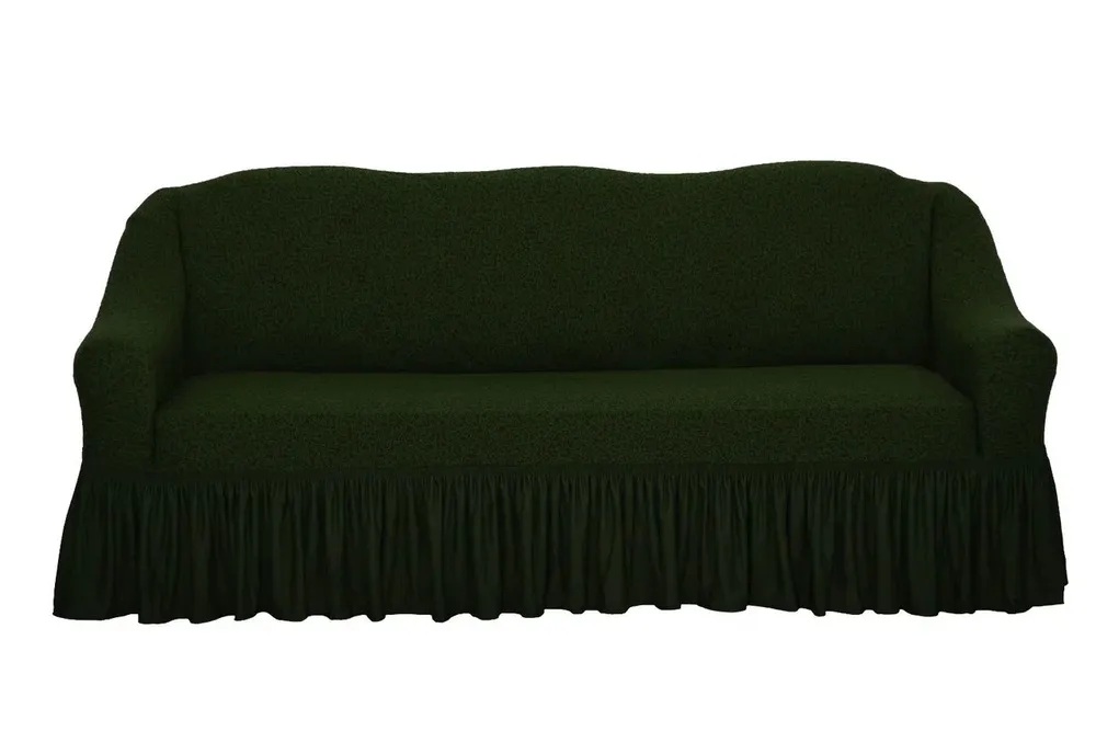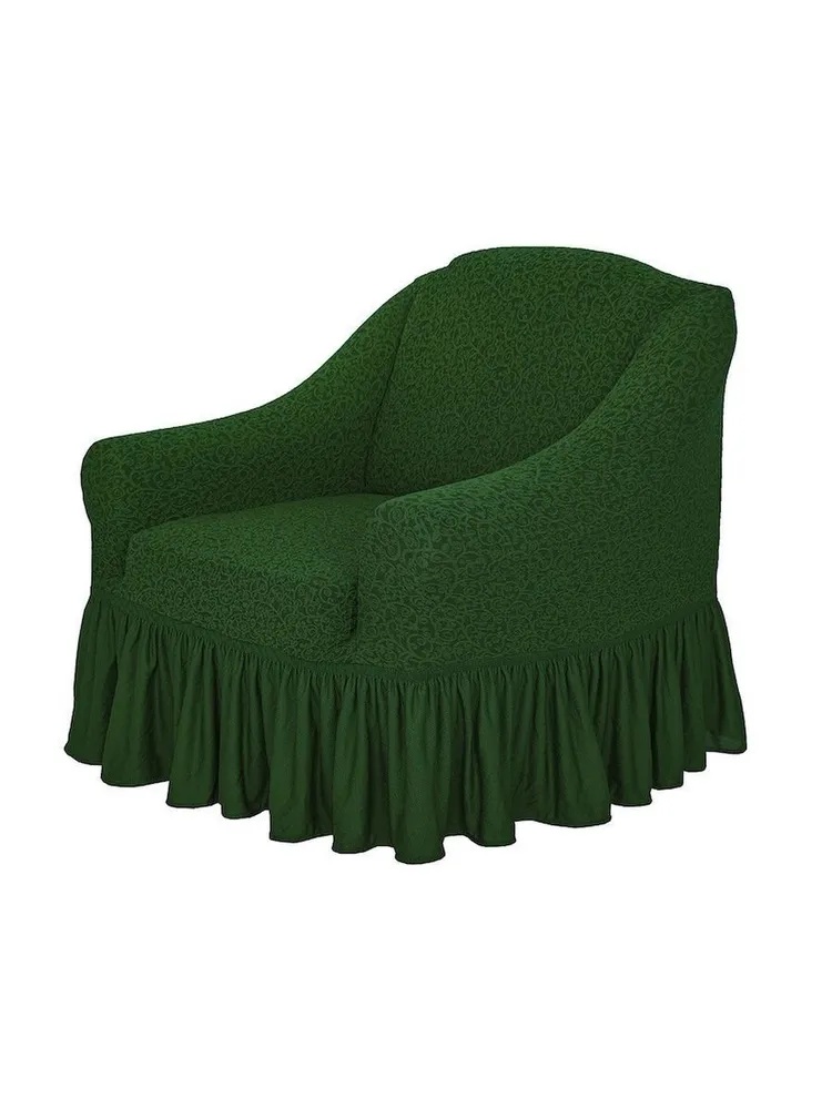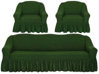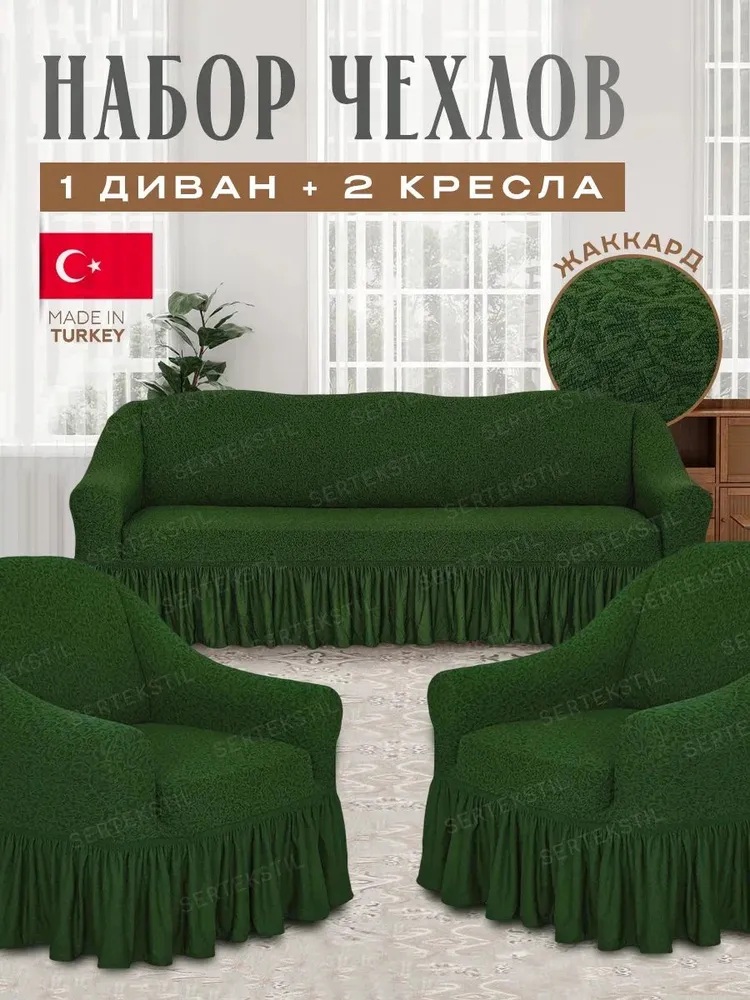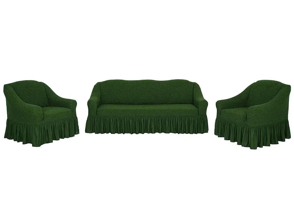Комплект чехлов на 3-х местный диван и 2 кресла с оборкой Жаккард ,зеленый