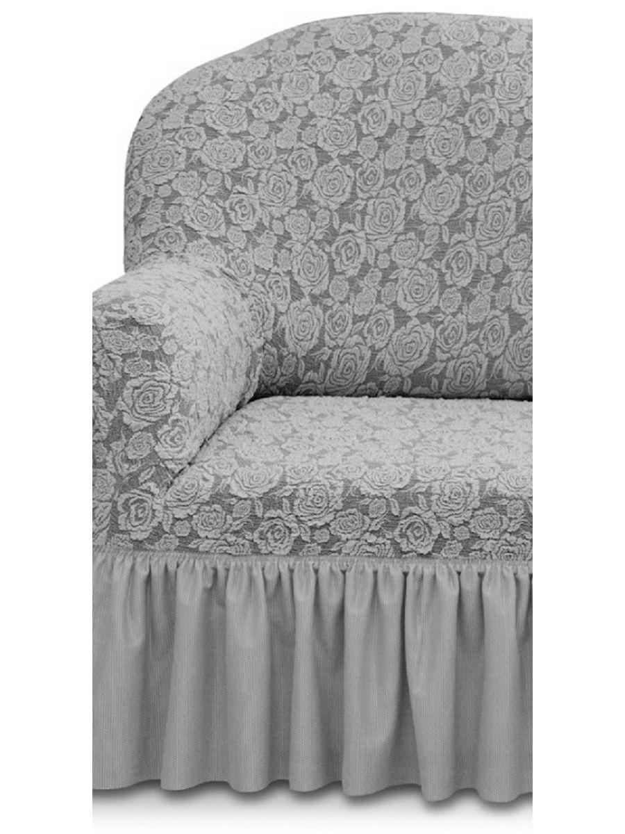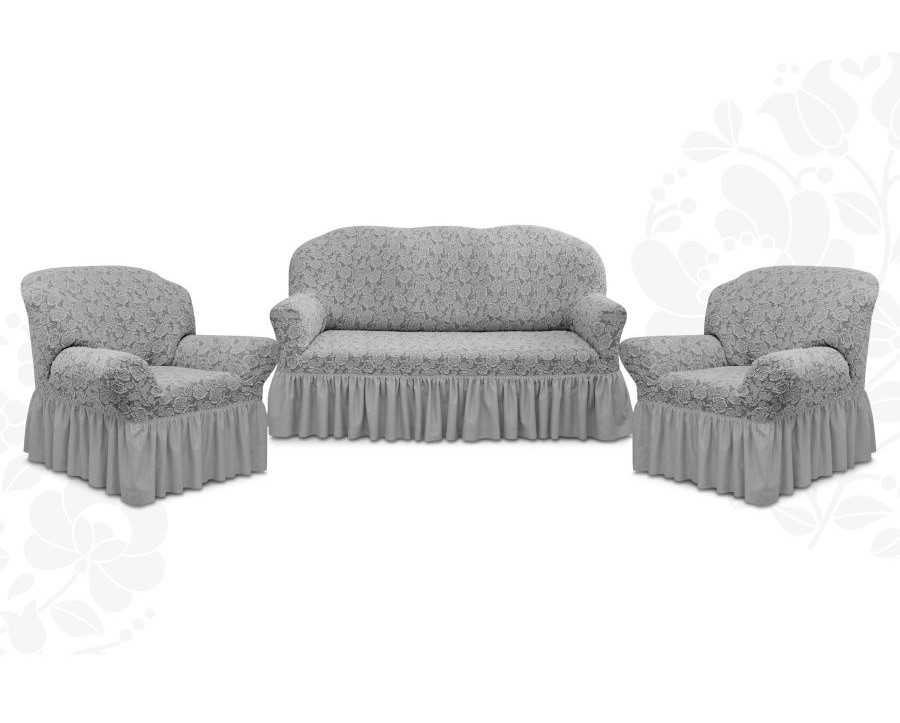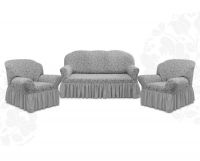 Комплект чехлов на 3-х местный диван и 2 кресла с оборкой Жаккард ,Серебро