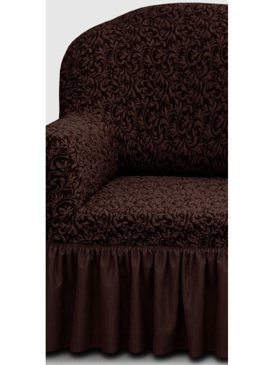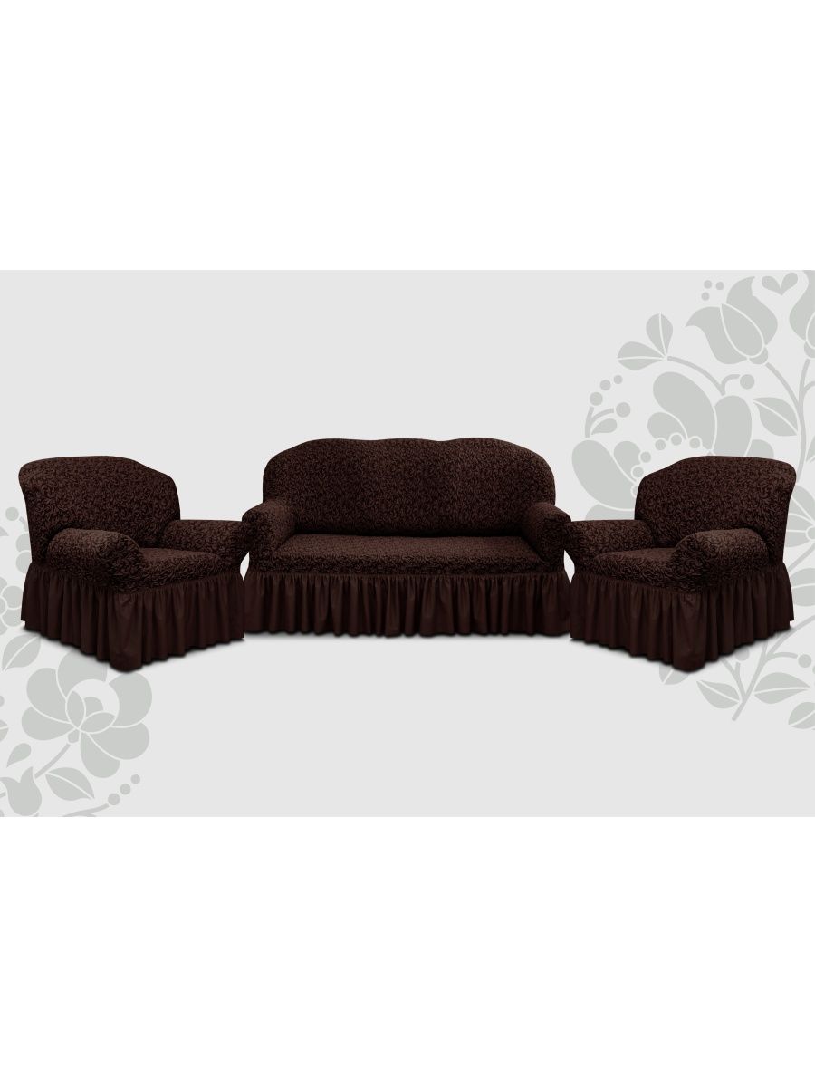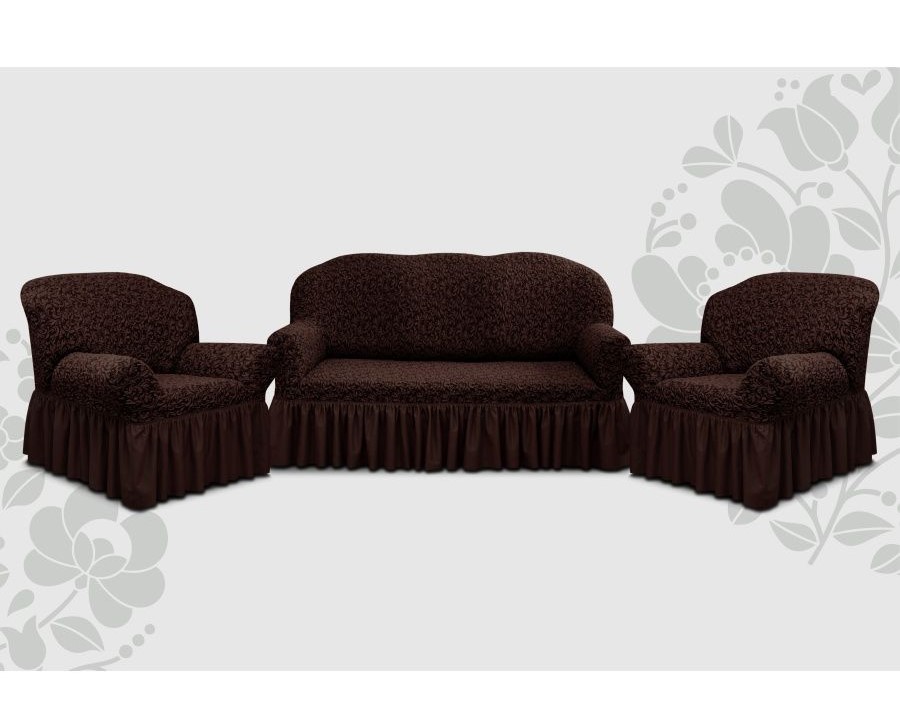 Комплект чехлов на 3-х местный диван и 2 кресла с оборкой Жаккард ,Шоколадный
