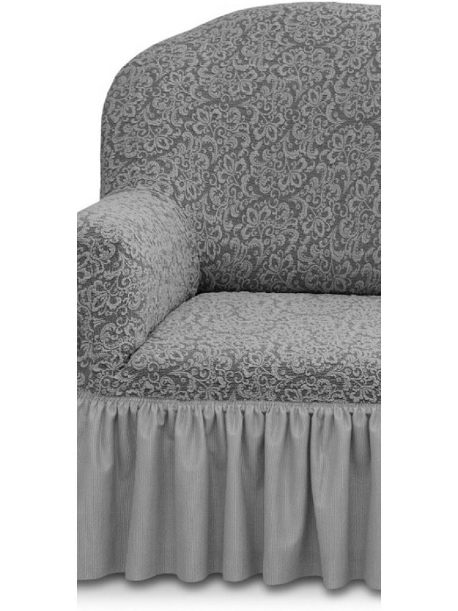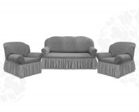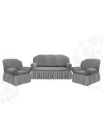 Комплект чехлов на 3-х местный диван и 2 кресла с оборкой Жаккард ,Серый