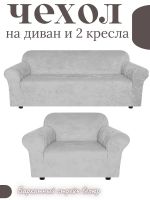 Комплект чехлов на диван и 1 кресло без оборки, велюр, светло-серый