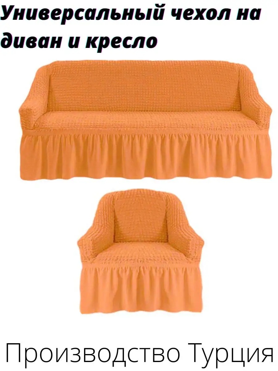 Комплект чехлов на диван и 1 кресло с оборкой, стрейч, оранжевый