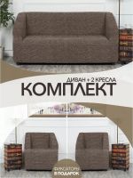 Комплект чехлов на диван и 2 кресла без оборки, жаккард, капучино