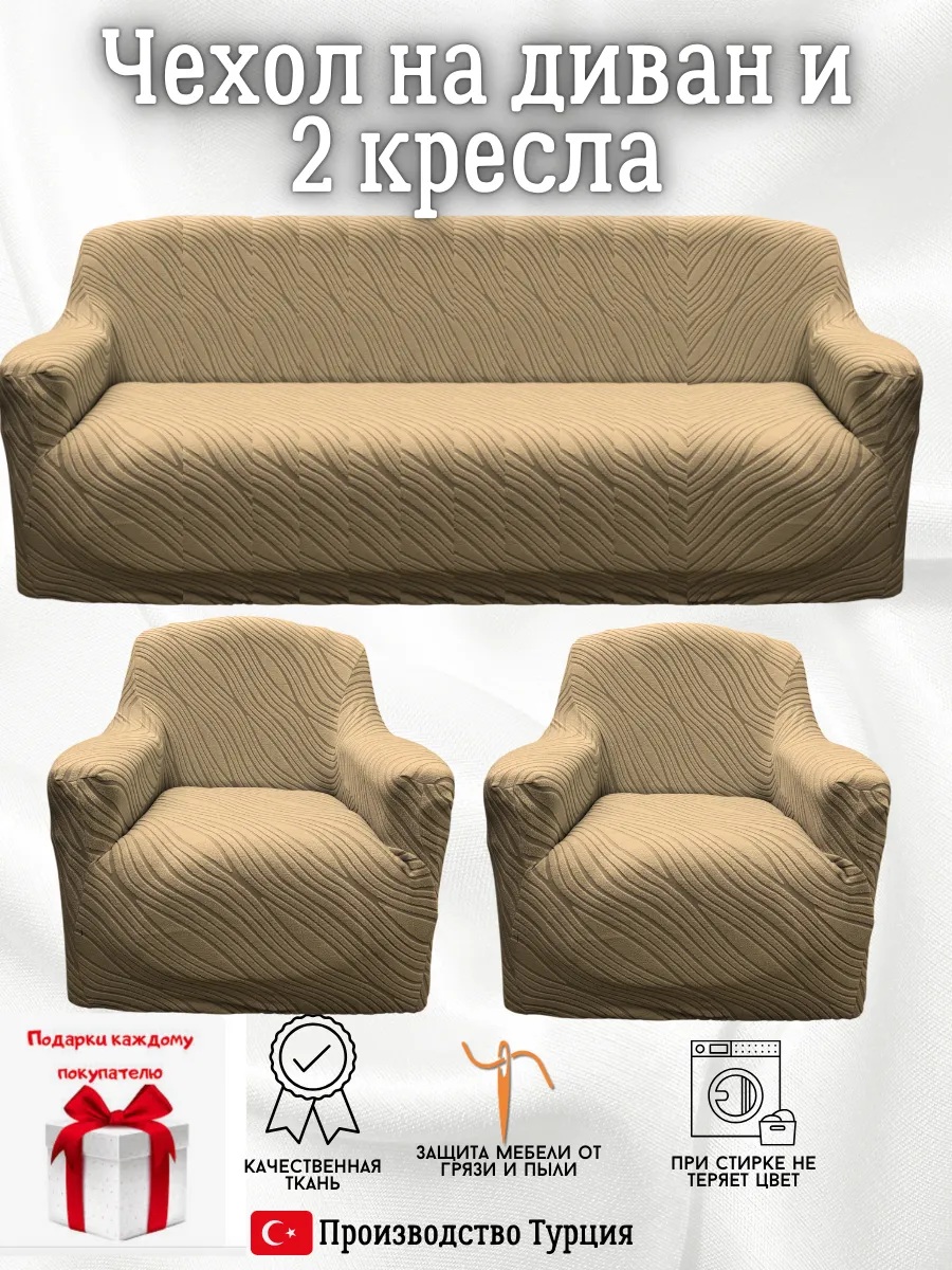 • Комплектация: 1 чехол для дивана + 2 чехла на кресла