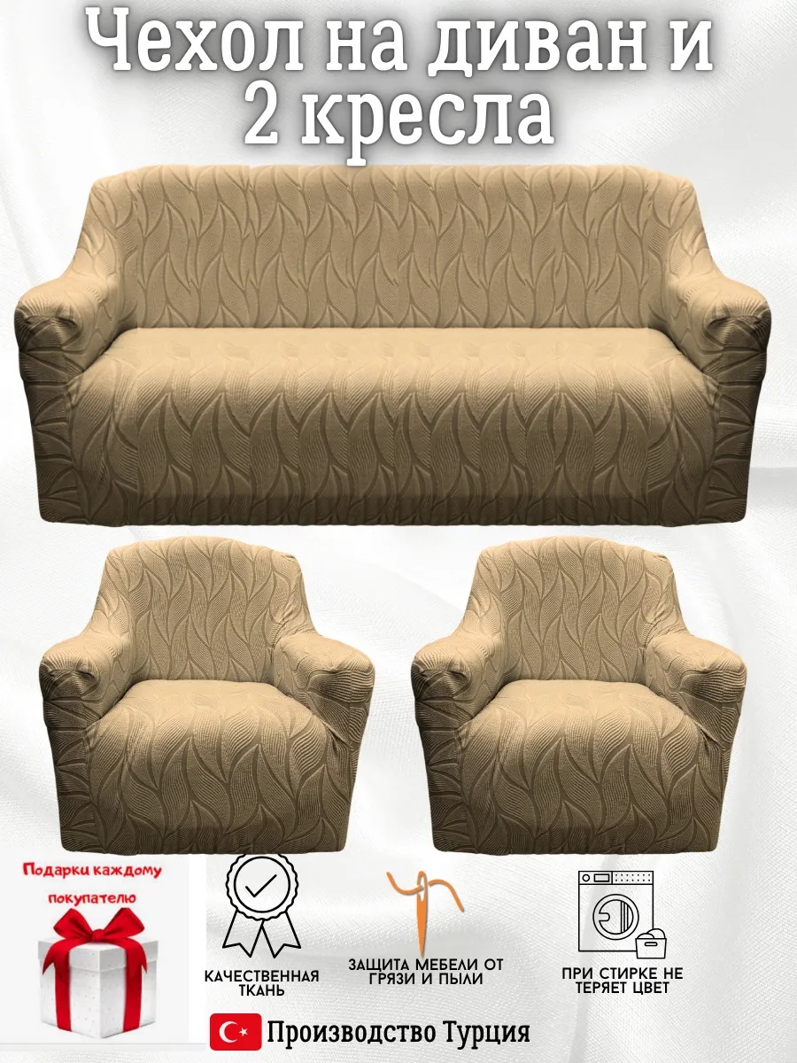 • Комплектация: 1 чехол для дивана + 2 чехла на кресла