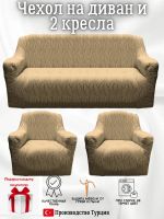 Комплект чехлов на диван и 2 кресла без оборки, жаккард, кофе