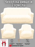 Комплект чехлов на диван и 2 кресла без оборки, жаккард, кремовый