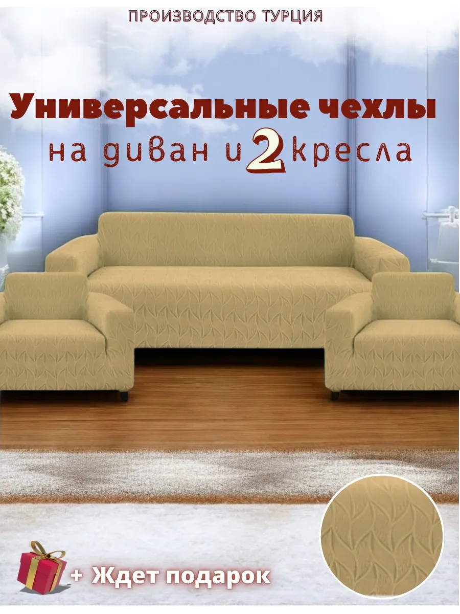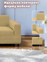 Комплект чехлов на диван и 2 кресла без оборки, жаккард, медово-бежевый