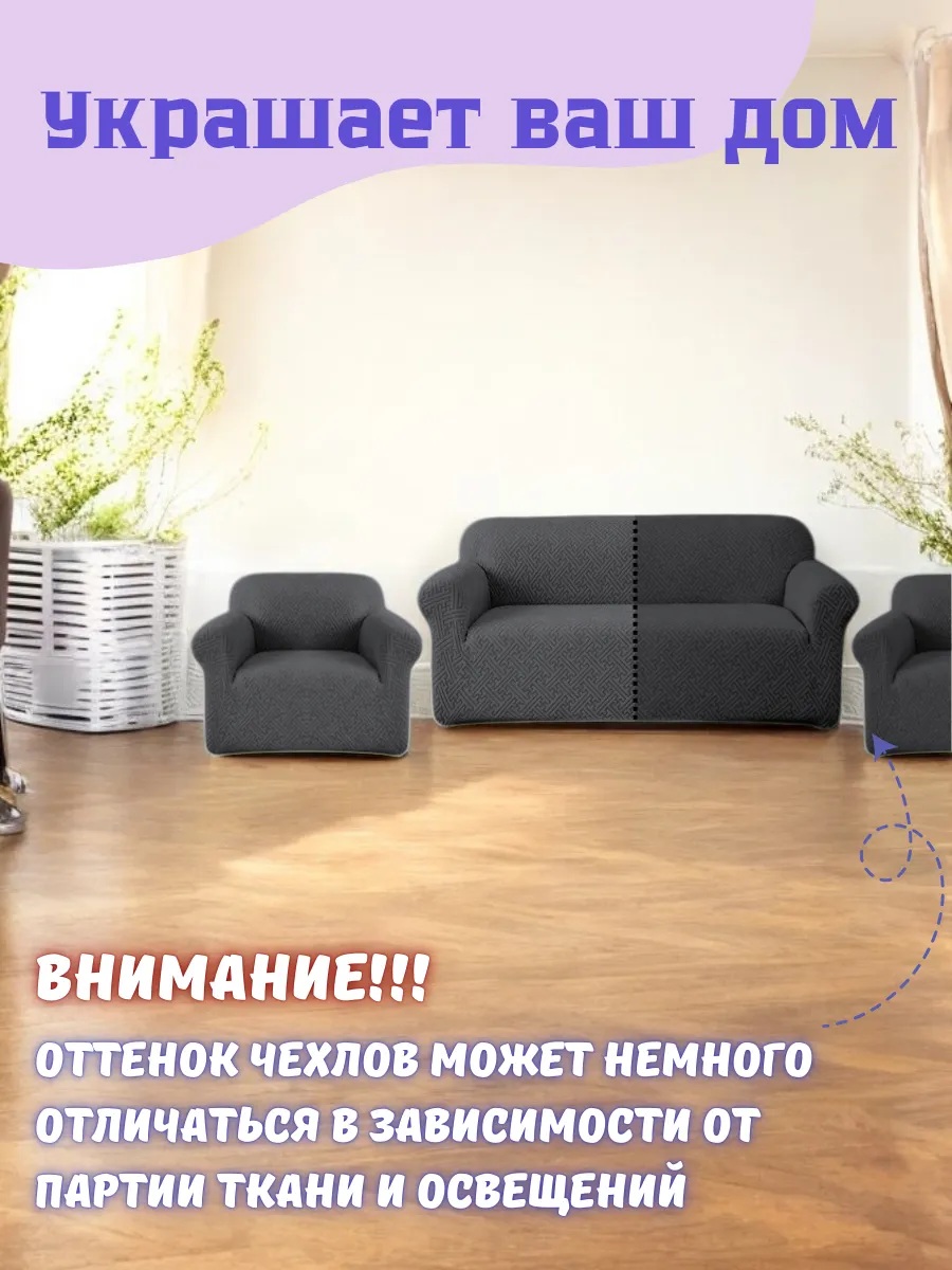 • Комплектация: 1 чехол для дивана + 2 чехла на кресла