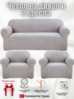 Комплект чехлов на диван и 2 кресла без оборки, жаккард, серый