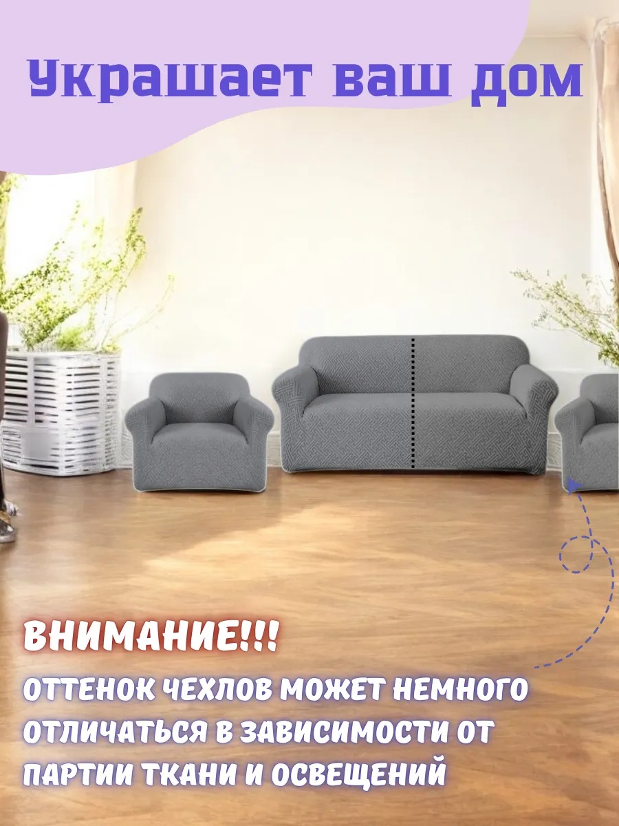 • Комплектация: 1 чехол для дивана + 2 чехла на кресла