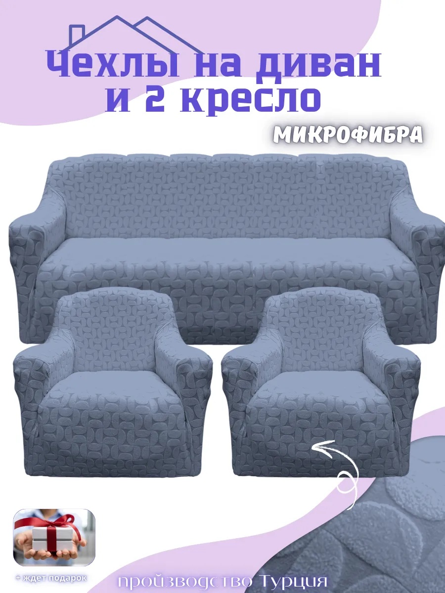 • Комплектация: 1 чехол для дивана + 2 чехла на кресла