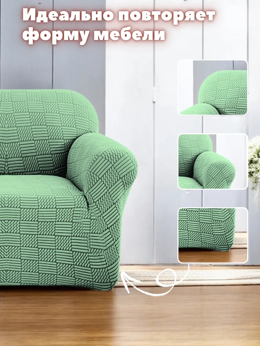 Комплект чехлов на диван и 2 кресла без оборки, жаккард, ярко-зеленый